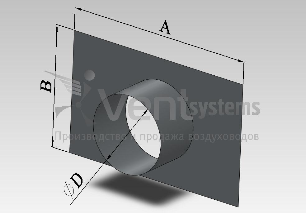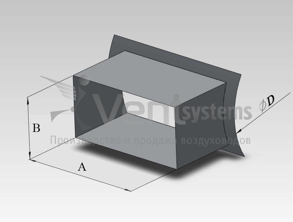 Прямоугольная стальная оцинкованная врезка в круглый воздуховод диаметром до 1250 мм