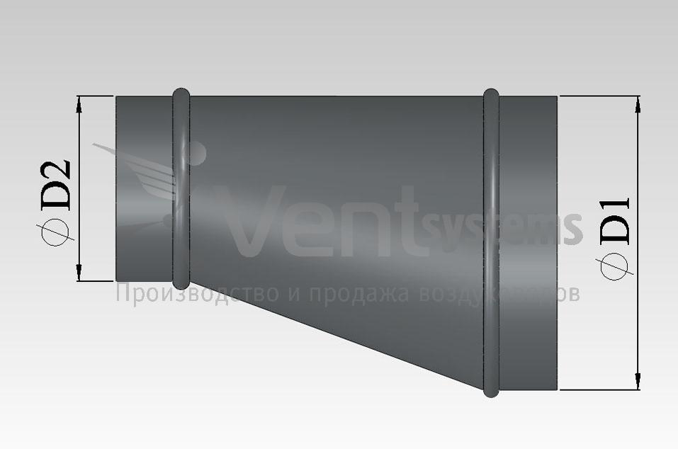 Круглый стальной оцинкованный переход диаметром до 1250 мм (длина перехода подбирается автоматически, исходя из рекомендованных параметров)